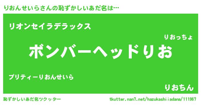| 欧米人風あだ名 | 『ダニエルりおんせいら』 |