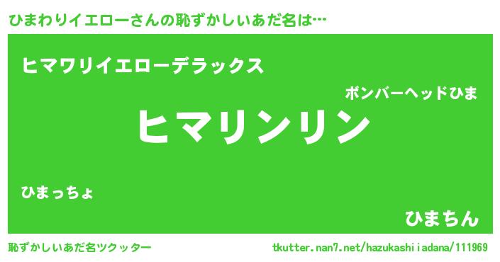 | 男性向けラノベタイトル風あだ名 | 『ひまわりイエローに滅ぼされるだけの簡単なお仕事です』 |