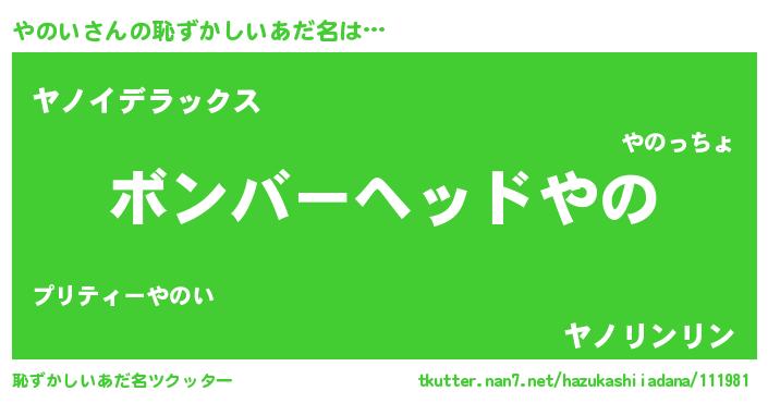 | 意味不明あだ名 | 『つくし科やのい属』『自称やのい』 |