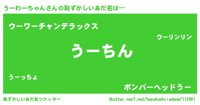 | ヒーロー風カッコイイあだ名 | 『仮面ウーダー』『ネオウーワーチャン』 |