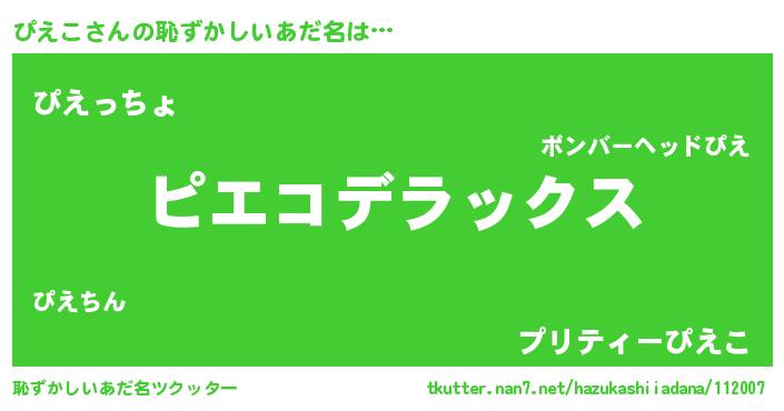 | 男性向けラノベタイトル風あだ名 | 『緋弾のピエコ』『魔法科高校のぴえこ』 |