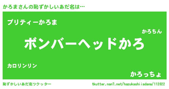 | ヒーロー風カッコイイあだ名 | 『天空の使者かろま』『スーパーカロマ』 |