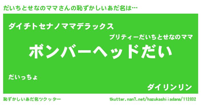 | 意味不明あだ名 | 『眠気覚ましガムだいちとせなのママ味』 |