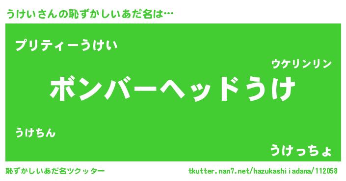 | ヒーロー風カッコイイあだ名 | 『仮面ウケダー』『友情の使者うけい』 |