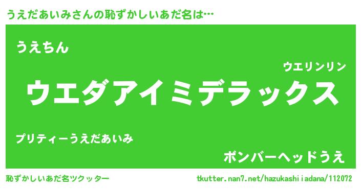 | 男性向けラノベタイトル風あだ名 | 『Re:うえだあいみから始める異世界生活』 |