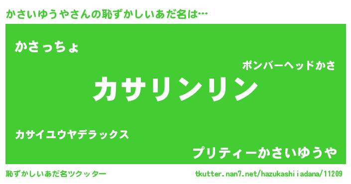 | ヒーロー風カッコイイあだ名 | 『黄金騎士カサ』『スーパーカサイユウヤ』 |