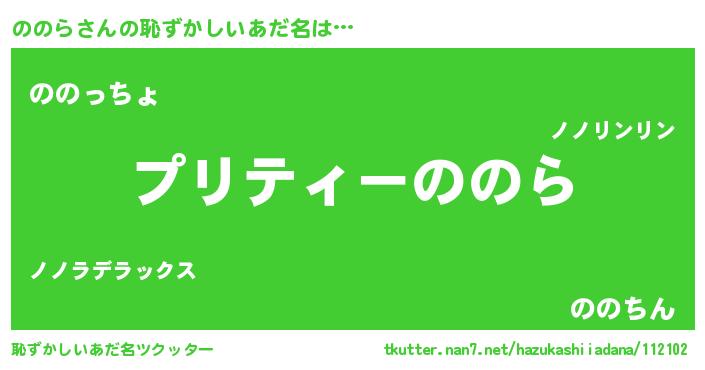 | ファンタジー風あだ名 | 『ノノフェル』『エターナルノノラー』 |