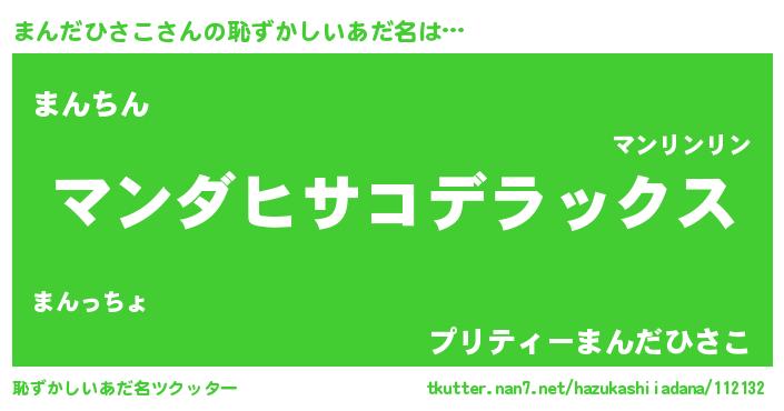 | 肩書あだ名 | 『まんだひさこ閣下』『まんだひさこ先生』 |