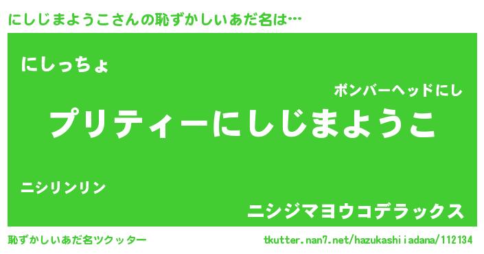 | 意味不明あだ名 | 『ペロリンにしじまようこ』 |