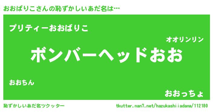 | 男性向けラノベタイトル風あだ名 | 『転生したらおおばりこだった件』 |