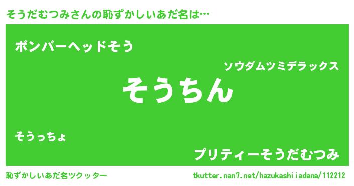 | ヘコむあだ名 | 『そうだむつみ(小並感)』『そうもー』 |
