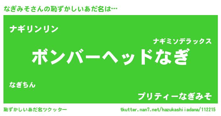 | ヘコむあだ名 | 『なぎっちょ』『なぎにゅー』 |