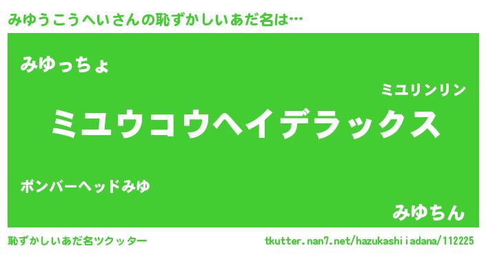 | 意味不明あだ名 | 『自称みゆうこうへい』 |
