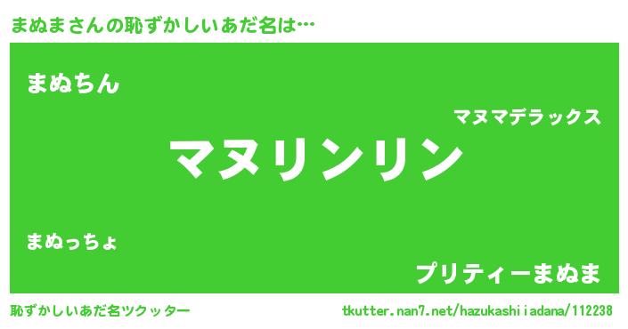 | 意味不明あだ名 | 『とにかく怪しいまぬま』『自称まぬま』 |