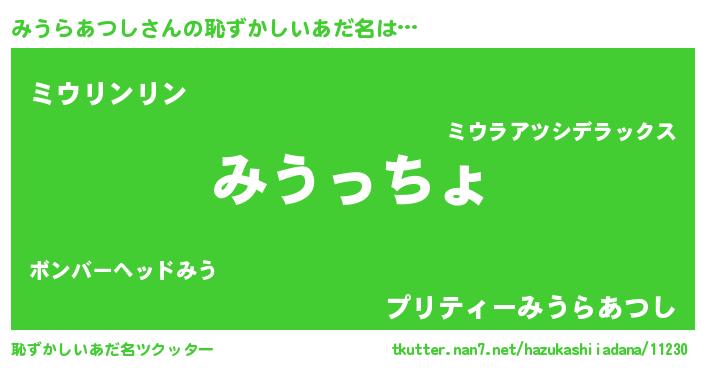 | 意味不明あだ名 | 『住所不定無職みうらあつし(84歳)』 |