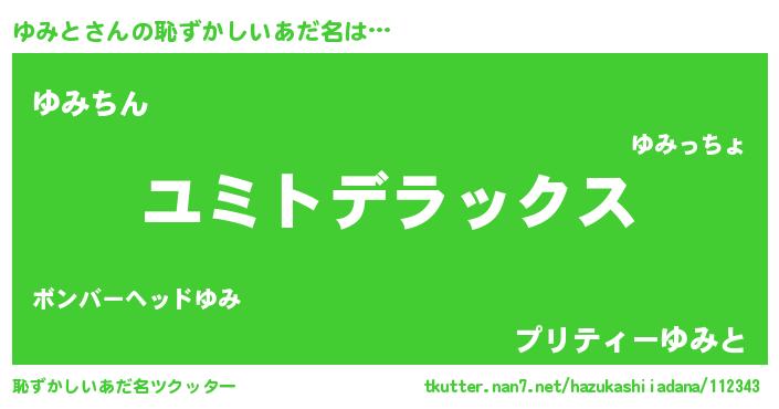 | 意味不明あだ名 | 『自称ゆみと』『永久保存ゆみと』 |