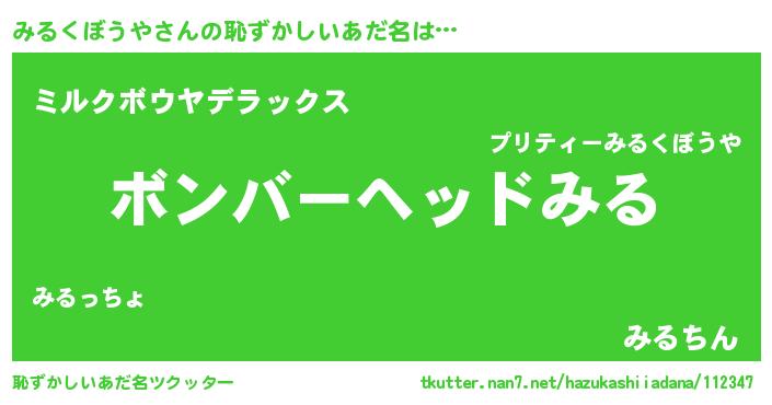 | ヘコむあだ名 | 『みるくぼうや(震え声)』『みるっふぃ~』 |