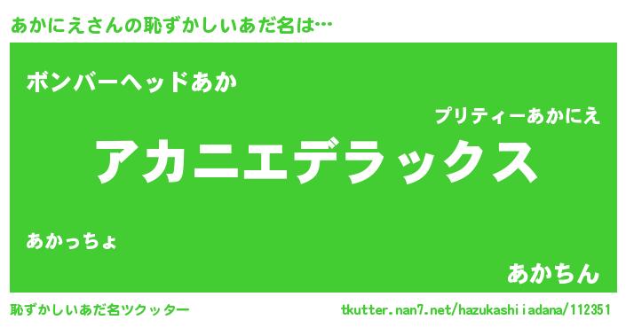 | ヘコむあだ名 | 『あかにえ(遠い目)』『あかにー』 |