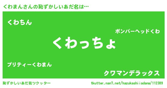 | 男性向けラノベタイトル風あだ名 | 『この素晴らしい世界にくわまんを!』 |