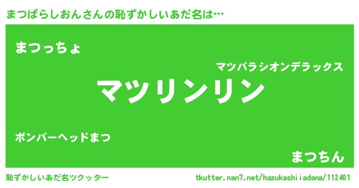 | 胡散臭い通販商品みたいなあだ名 | 『信頼と実績のサプリメント…その名も「まつばらしおん」』 |