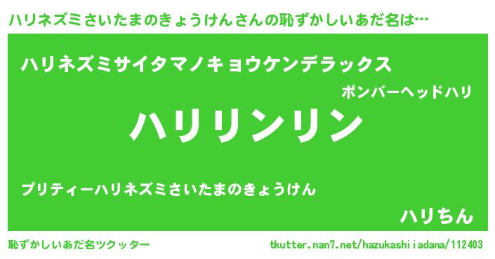 | ポケモン風あだ名 | 『ヒハリネズミサイタマノキョウケン』 |