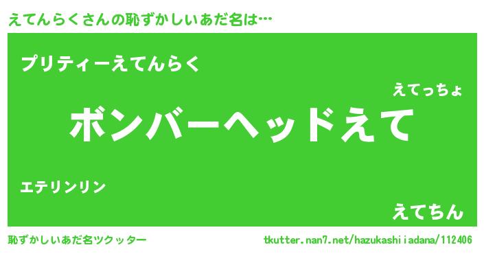 | ヘコむあだ名 | 『えてにー』『えてんらく(遠い目)』 |