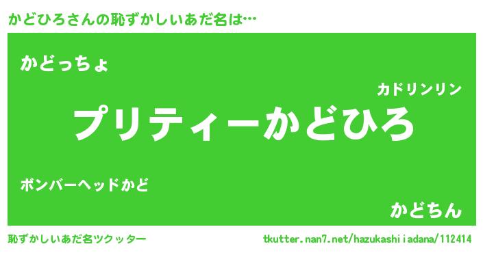 | ヘコむあだ名 | 『かどにゅー』『レバニラ』『かどを』 |