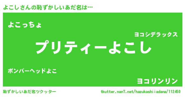 | ヘコむあだ名 | 『よこふぇ~』『なまこ酢』 |