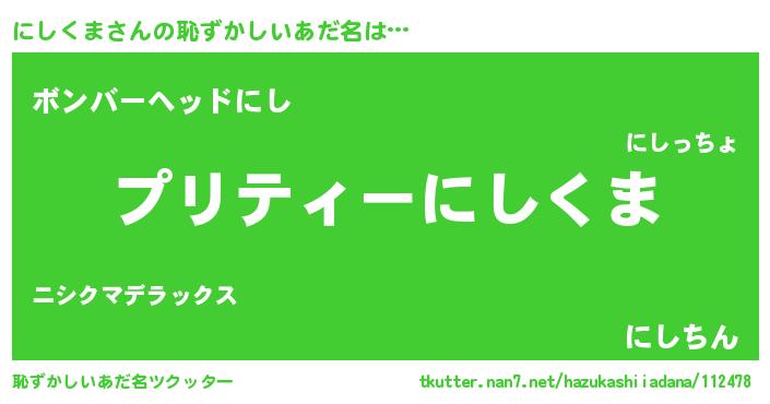 | 意味不明あだ名 | 『住所不定無職にしくま(91歳)』 |