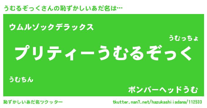 | 男性向けラノベタイトル風あだ名 | 『うむるぞっくの憂鬱』 |