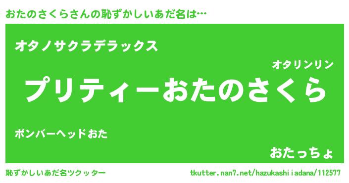 | ヒーロー風カッコイイあだ名 | 『スーパーオタノサクラ』『仮面オタダー』 |