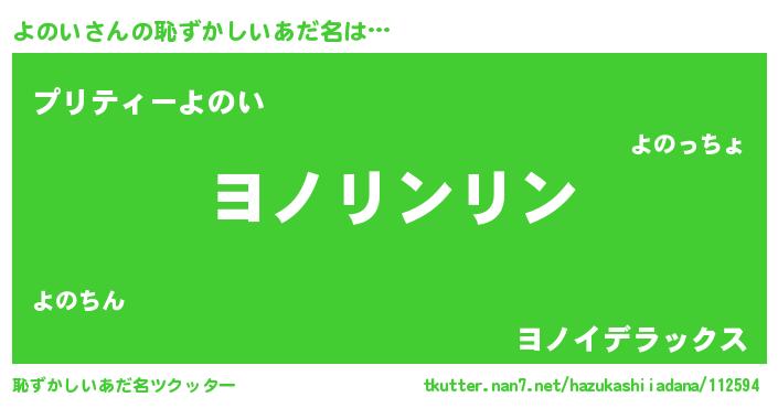 | 意味不明あだ名 | 『とにかく怪しいよのい』『自称よのい』 |
