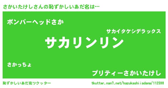 | 意味不明あだ名 | 『とにかく怪しいさかいたけし』 |