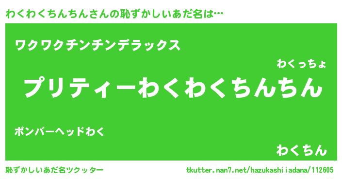 | 胡散臭い通販商品みたいなあだ名 | 『必ず成功する霊験あらたかなお札…その名も「わくわくちんちん」』 |
