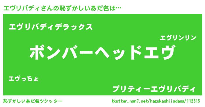 | ヒーロー風カッコイイあだ名 | 『仮面エヴダー』『究極戦士エヴリバディ』 |