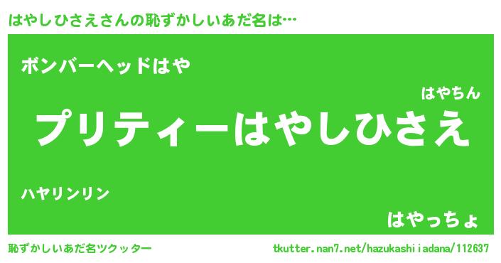 | ヒーロー風カッコイイあだ名 | 『スーパーハヤシヒサエ』『仮面ハヤダー』 |