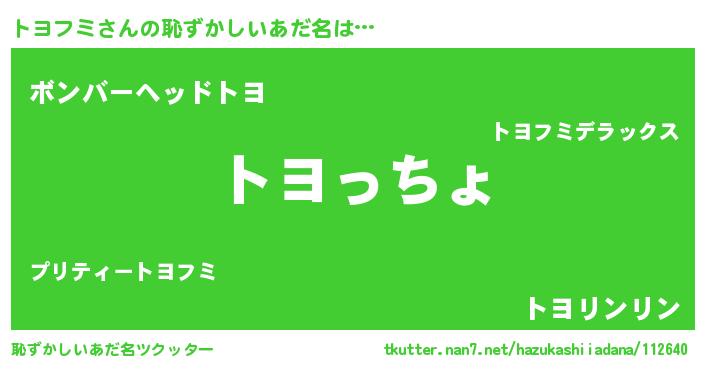 | 男性向けラノベタイトル風あだ名 | 『この素晴らしい世界にトヨフミを!』 |