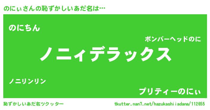 | 男性向けラノベタイトル風あだ名 | 『はたらくのにぃさま!』『のにぃの憂鬱』 |