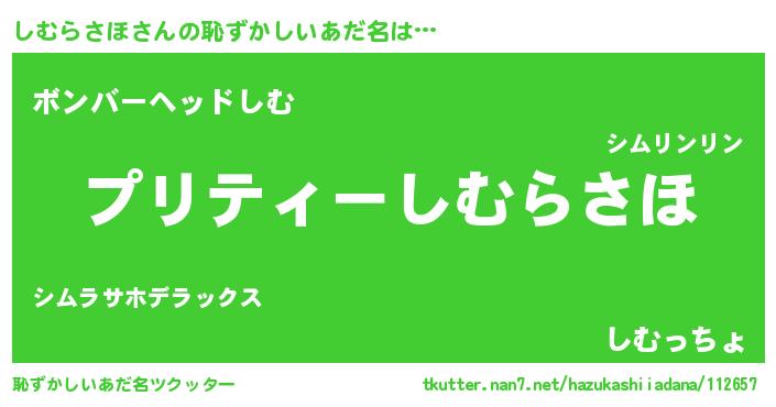 | ヘコむあだ名 | 『しむふぇ~』『なまこ酢』『しむを』 |