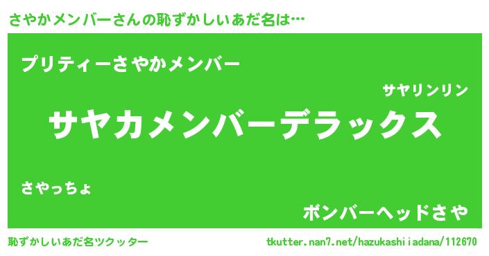 | 男性向けラノベタイトル風あだ名 | 『サヤカメンバースレイヤー』 |