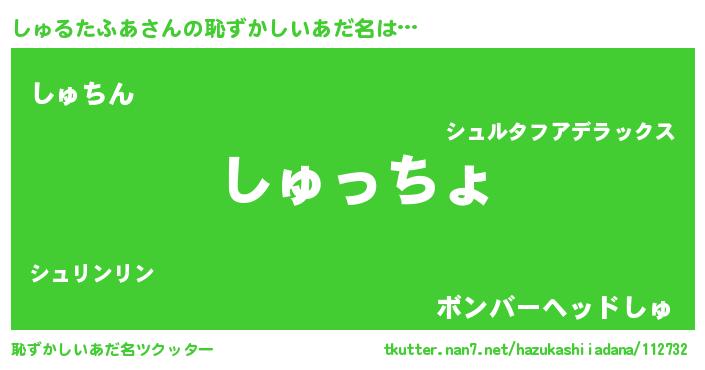 | 意味不明あだ名 | 『しゅるたふあフォーエバー』 |