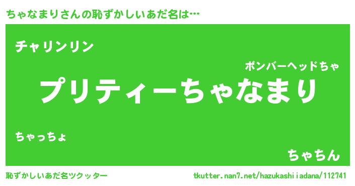 | ヒーロー風カッコイイあだ名 | 『スーパーチャナマリ』『魔戒騎士チャ』 |