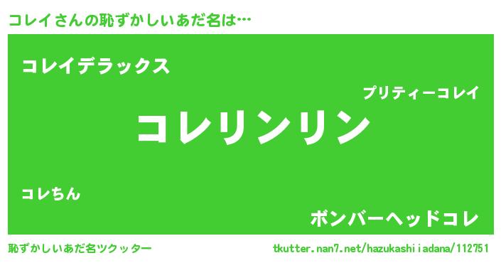 | 意味不明あだ名 | 『とにかく怪しいコレイ』『自称コレイ』 |