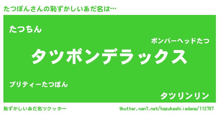 | ヒーロー風カッコイイあだ名 | 『サイバー戦士タツボン』『ネオタツボン』 |