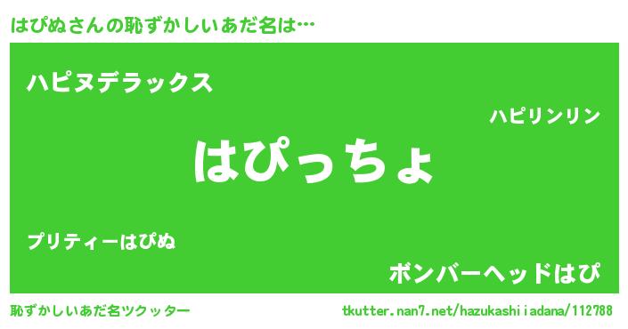 | ヘコむあだ名 | 『豆乳』『はぴを』『はぴふぇ~』 |