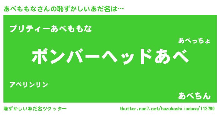 | ヒーロー風カッコイイあだ名 | 『仮面アベダー』『慈愛の使者あべももな』 |