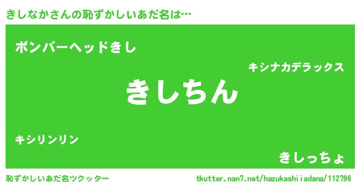 | 男性向けラノベタイトル風あだ名 | 『きしなかという概念が存在しない退屈な世界 』 |