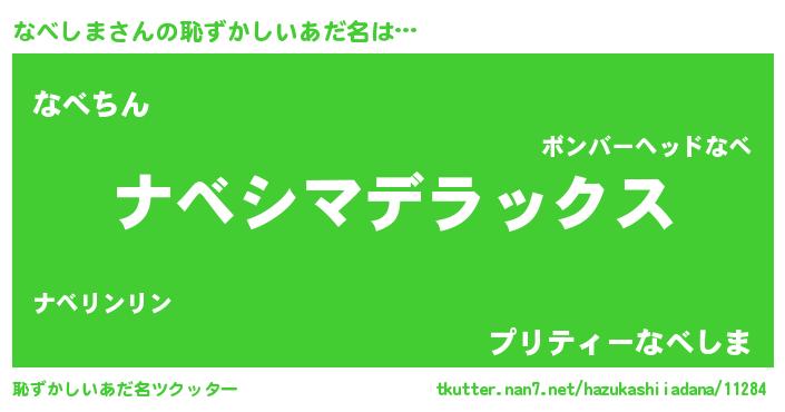| 意味不明あだ名 | 『自称なべしま』『永久保存なべしま』 |