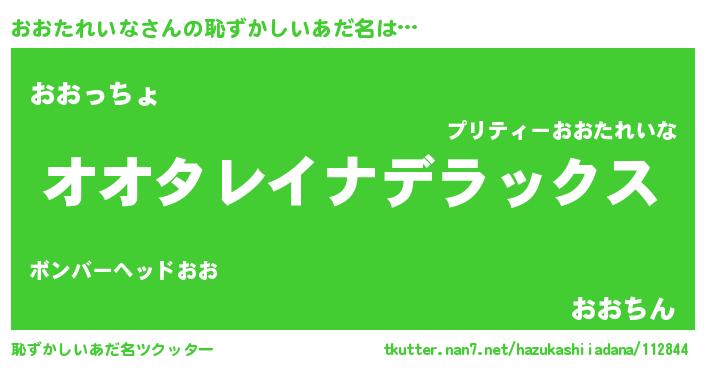 | 女子向けラノベタイトル風あだ名 | 『おおたれいなアンティーク』 |