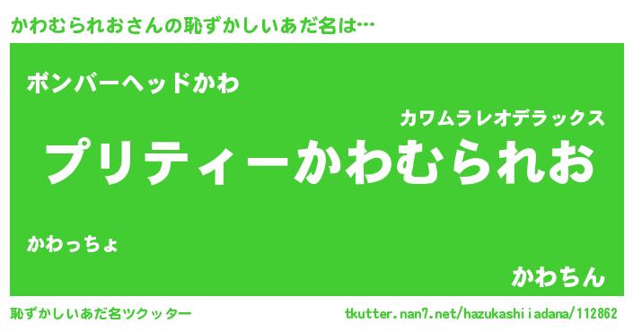 | 男性向けラノベタイトル風あだ名 | 『かわむられおに滅ぼされるだけの簡単なお仕事です』 |